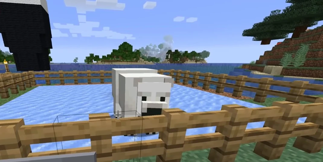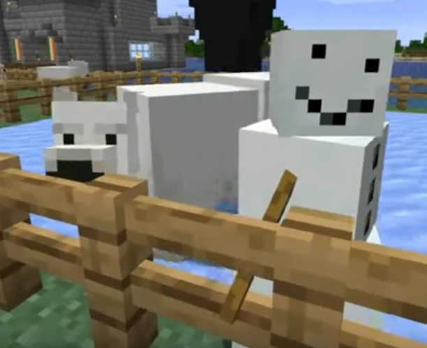 While in an iceberg biome, Jack's first attempt to tame a polar bear failed, when the mother attacked him while he was trying to tame her cub. He later returned and spotted another bear, which he tried taming with fish to no avail and tried putting on a saddle. He then decided to kidnap and take him back home, where Jack immediately named him.